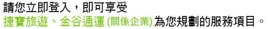歡迎光臨捷寶旅遊會員服務專區,如果您有其他的服務需求,歡迎與捷寶旅遊客服中心聯絡...